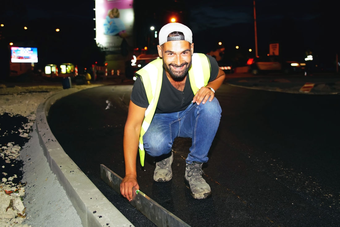 Romāns Kleins ir šajā objektā strādājošā ceļu būves uzņēmuma pārstāvis. Mēs pie viņa devāmies svarīga uzdevuma laikā – asfalta līmeņa regulēšanā, kas nepieciešama, lai nākotnē tam nodrošinātu pienācīgu ūdens novadīšanu.