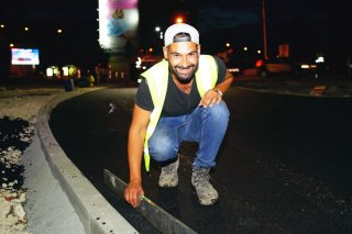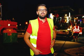 Maiņa ilgst pusi diennakts, brigādē ir aptuveni 30 vīrieši. Svaiga, karsta asfalta “uzglabāšanas laiks” ir tikai dažas stundas, tāpēc par kafijas pauzēm un pilnvērtīgām vakariņām var tikai sapņot. Karstums, troksnis, specifiskā smaka…