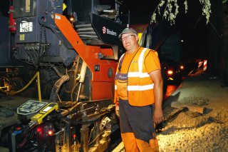 Kā saka meistars, grūtākais ir pielāgot organismu šādam darba režīmam. Ir labi, ja objekts ir tāds, kā šeit – neliels un to var pabeigt vienas nakts laikā, bet, ja nepieciešams uzklāt asfaltu kilometrus garam jaunam ceļam? Tad strādāt nākas katru nakti visu nedēļu, 12 stundas katru dienu.