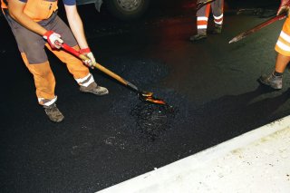 Ar asfaltu ir jāstrādā ātri un bez aizķeršanās, jo maisījums ir jāpaspēj uzklāt līdz brīdim, kad tas sacietē (tad tas vairs nav lietojams). Kafijas pauzes vai pārtraukumi ēšanai izpaliek. “Viss ir kustībā,” smejas strādnieki.