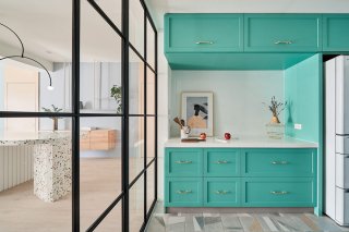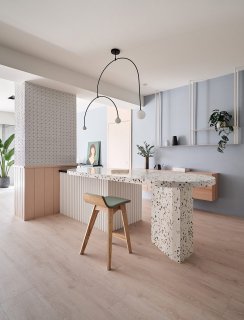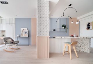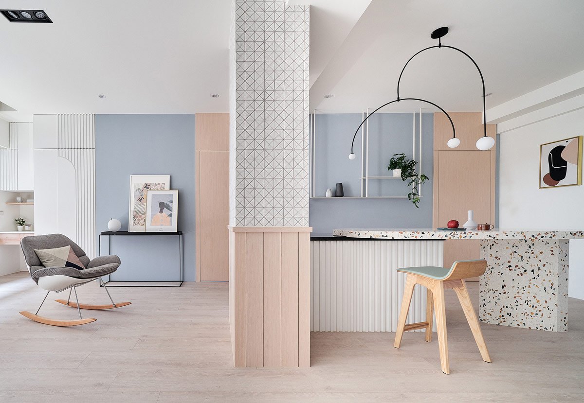 ROZĀ UN GAIŠI ZILS INTERJERA DIZAINS
