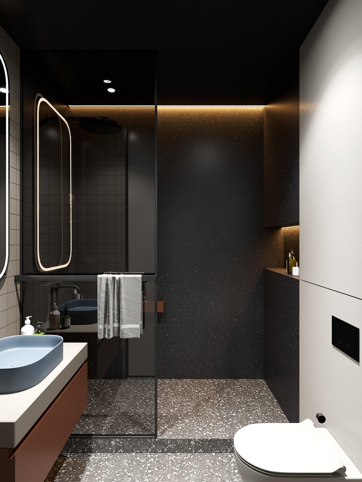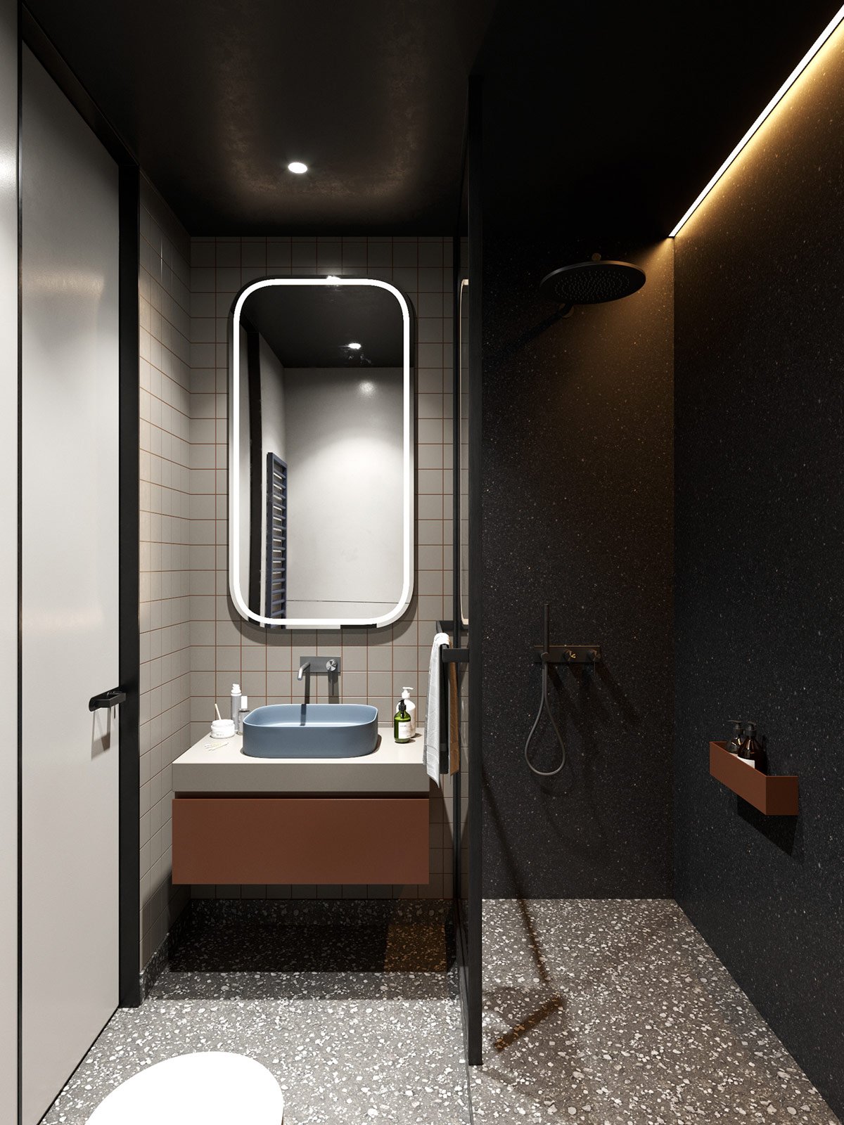 MŪSDIENĪGS INTERJERA DIZAINS AR TUMŠIEM ELEMENTIEM