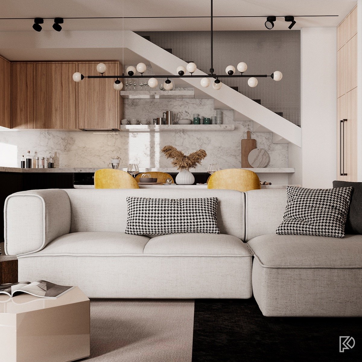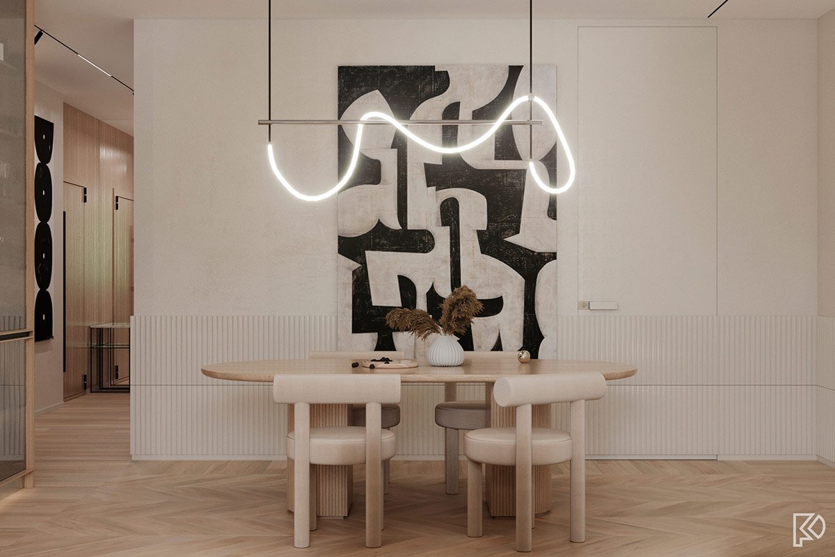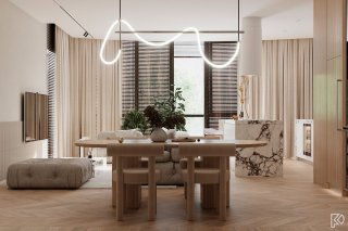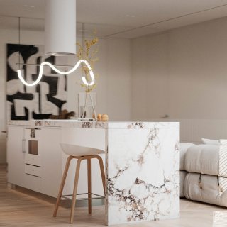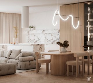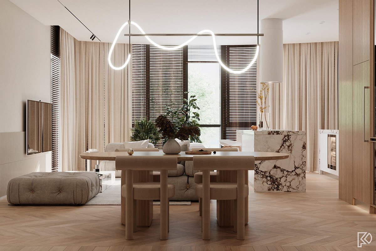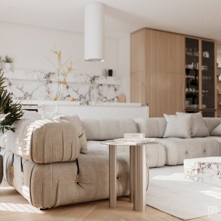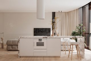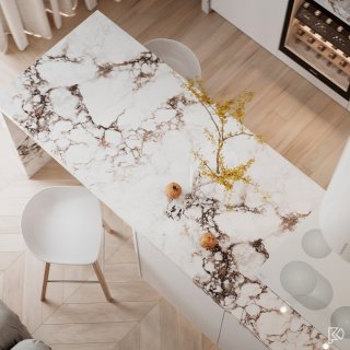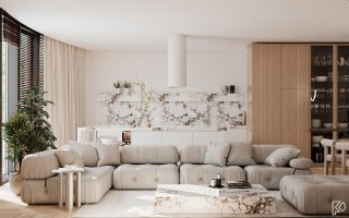 Vieglas un mājīgas minimālisma noskaņas interjerā ar baltu marmora un koka akcentiem Ceturtdiena, 14 janvārī, 2021