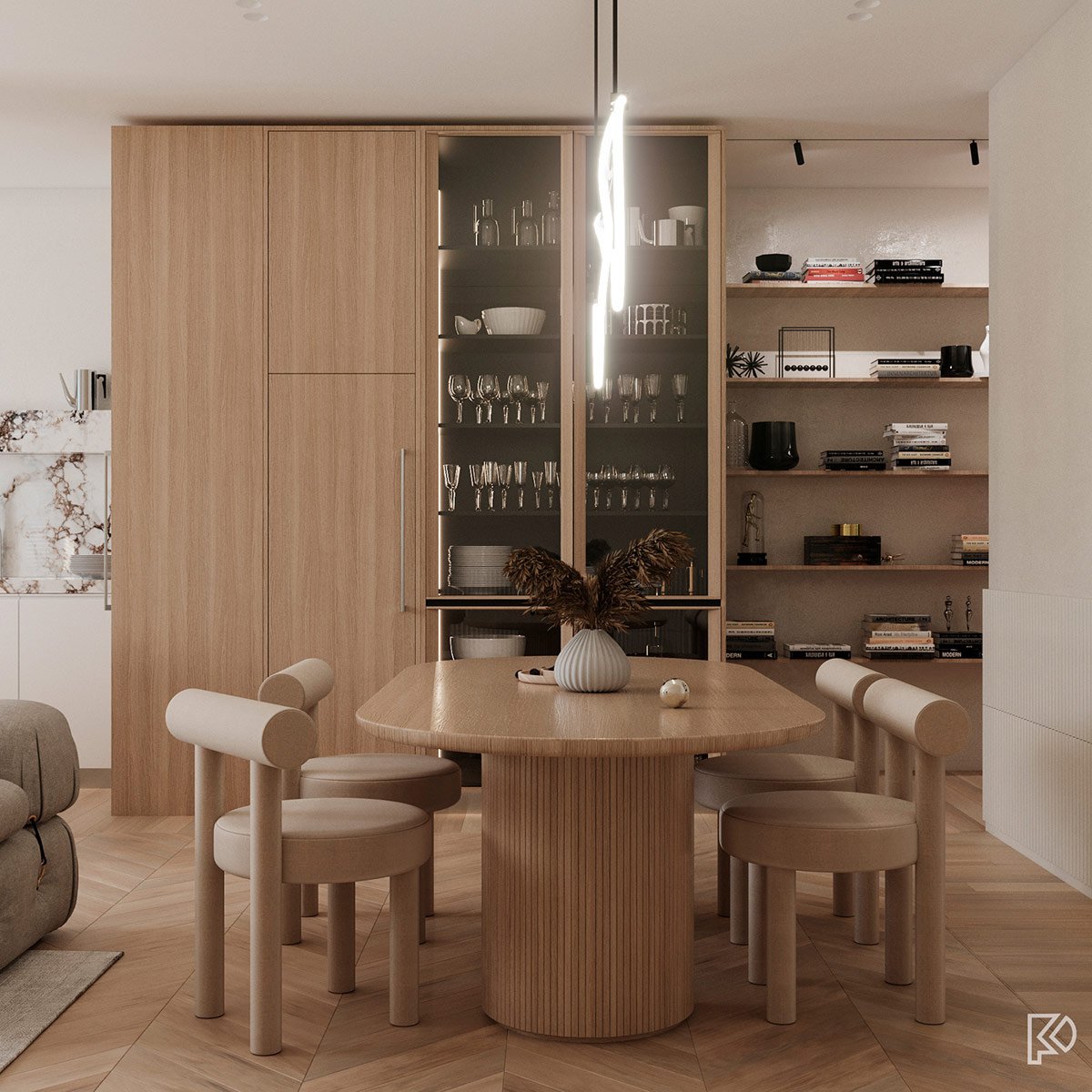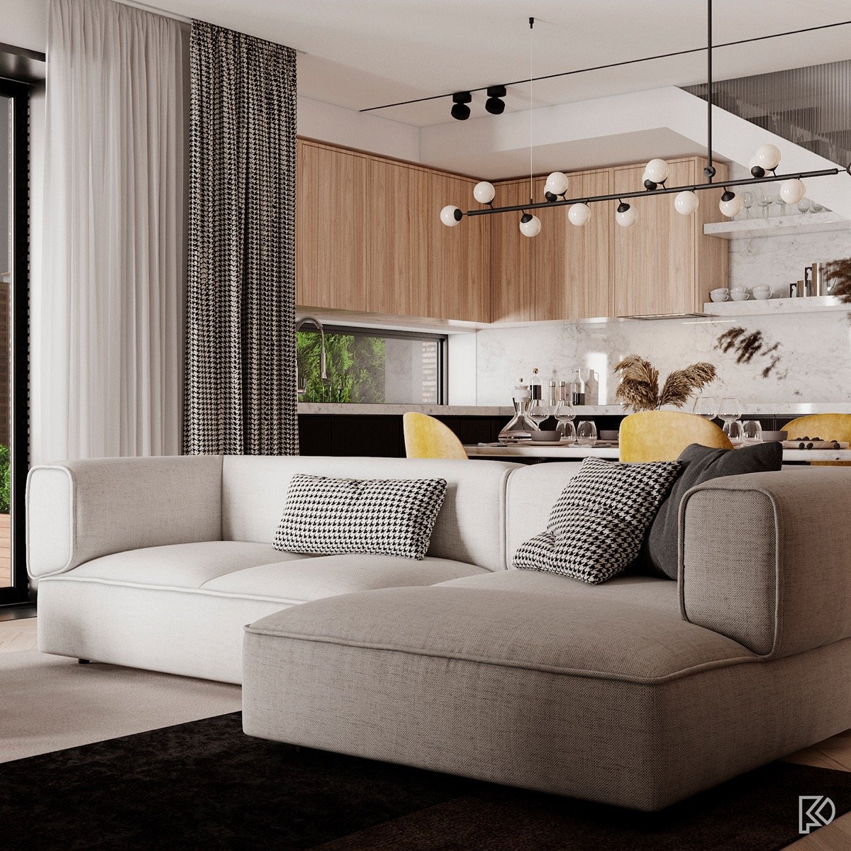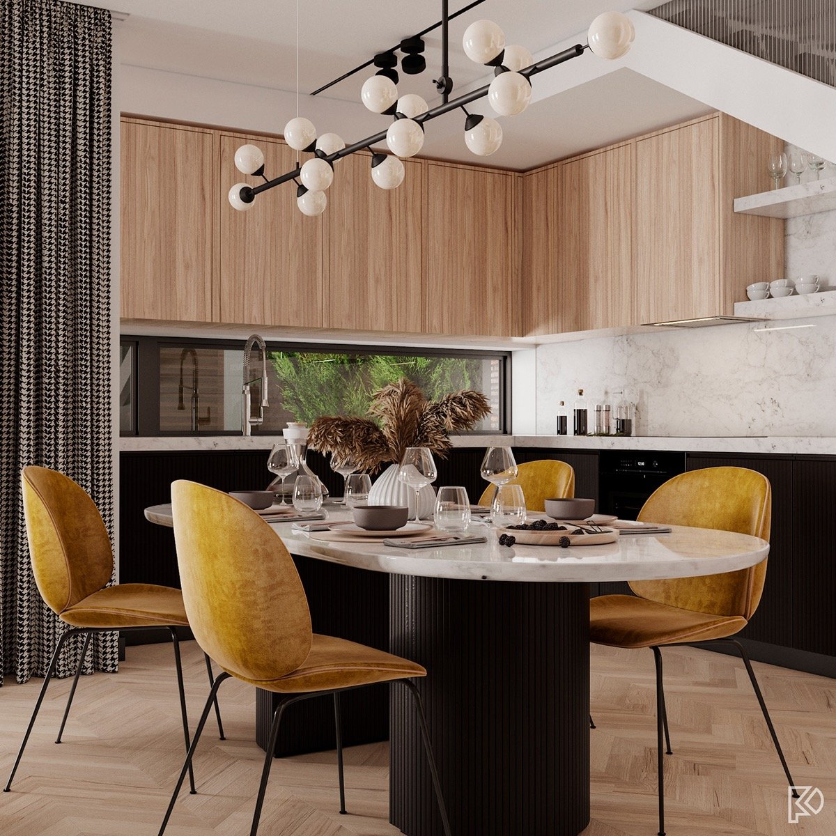 Vieglas un mājīgas minimālisma noskaņas interjerā ar baltu marmora un koka akcentiem Ceturtdiena, 14 janvārī, 2021