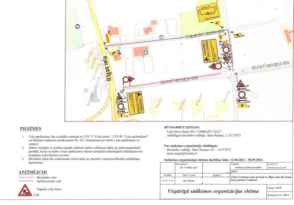 Pārbūvē esošais Alvila Freimaņa ielas posms būs slēgts automašīnu satiksmei. Tā apbraukšana paredzēta pa blakus esošo Eduarda Lācera ielu. Aktuālā informācija par satiksmes ierobežojumiem ir pieejama Valmieras pilsētas pašvaldības mājaslapā.