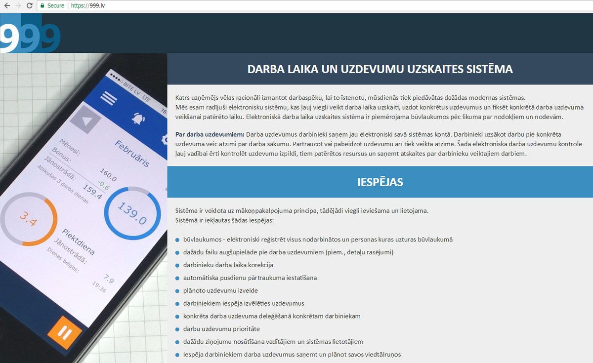 Elektroniskās darba laika uzskaites sistēma 999.lv